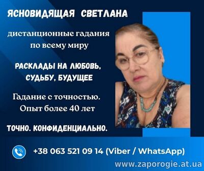 Гадалка Запорожье. Ясновидящая Запорожье. Снять порчу Запорожье. Предсказание будущего Запорожье. Светлана — сильнейшая ясновидящая, потомственная таролог с многолетним опытом. Она помогает тем, кт